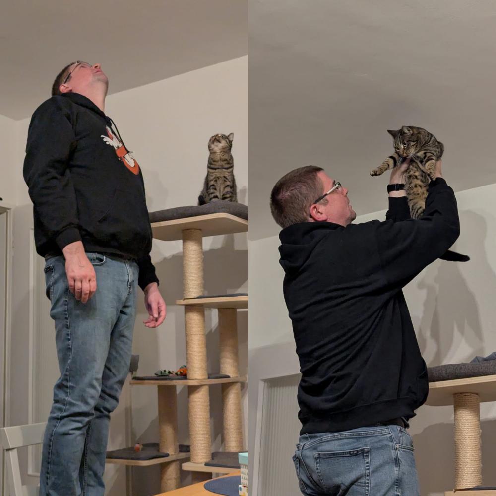 Fine wird ewig das Kitten bleiben, aber wir haben gemeinsame Hobbies entdeckt. Eines davon ist Geister an der Decke zu jagen. Wir haben bis heute nicht rausgefunden, was sie da sieht.