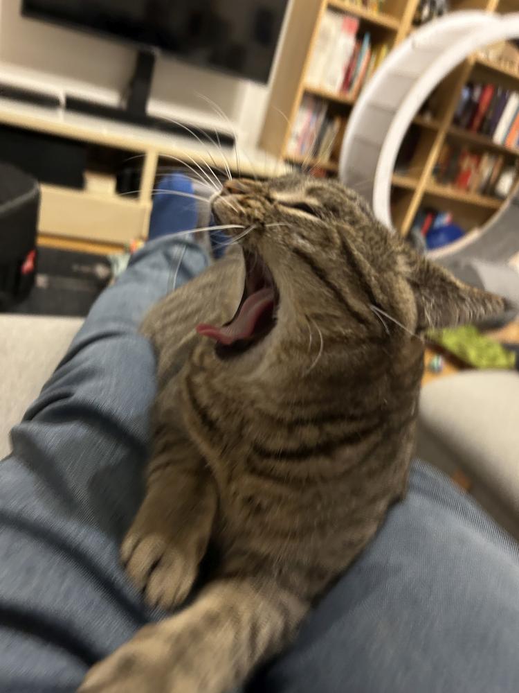 Sie spielt, tobt und staubt alles an Leckerchen ab was sie bekommen kann. Sie ist definitiv die Dame des Hauses. Und wenn am liebsten schläft die Dame des Hauses auf Beinen. Am liebsten auf meinen wenn ich auf dem Sofa sitze. Wenn das passiert kann ich erstmal alles andere im Programm vollkommen abhaken. Die nächste Stunde geht da gar nichts mehr. Und wer Katzen hat weiß: Niemand weckt ungestraft eine schlafende Katze. Schon gar nicht wenn schlafende Katze so süß aus der Wäsche schaut.